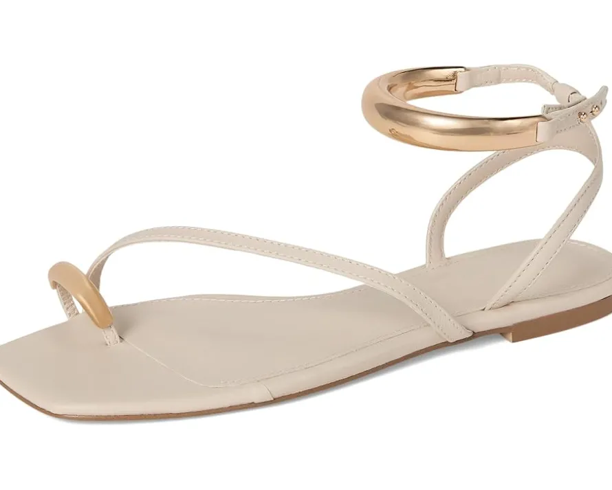 - Gold hardware ankle strap and toe ring.