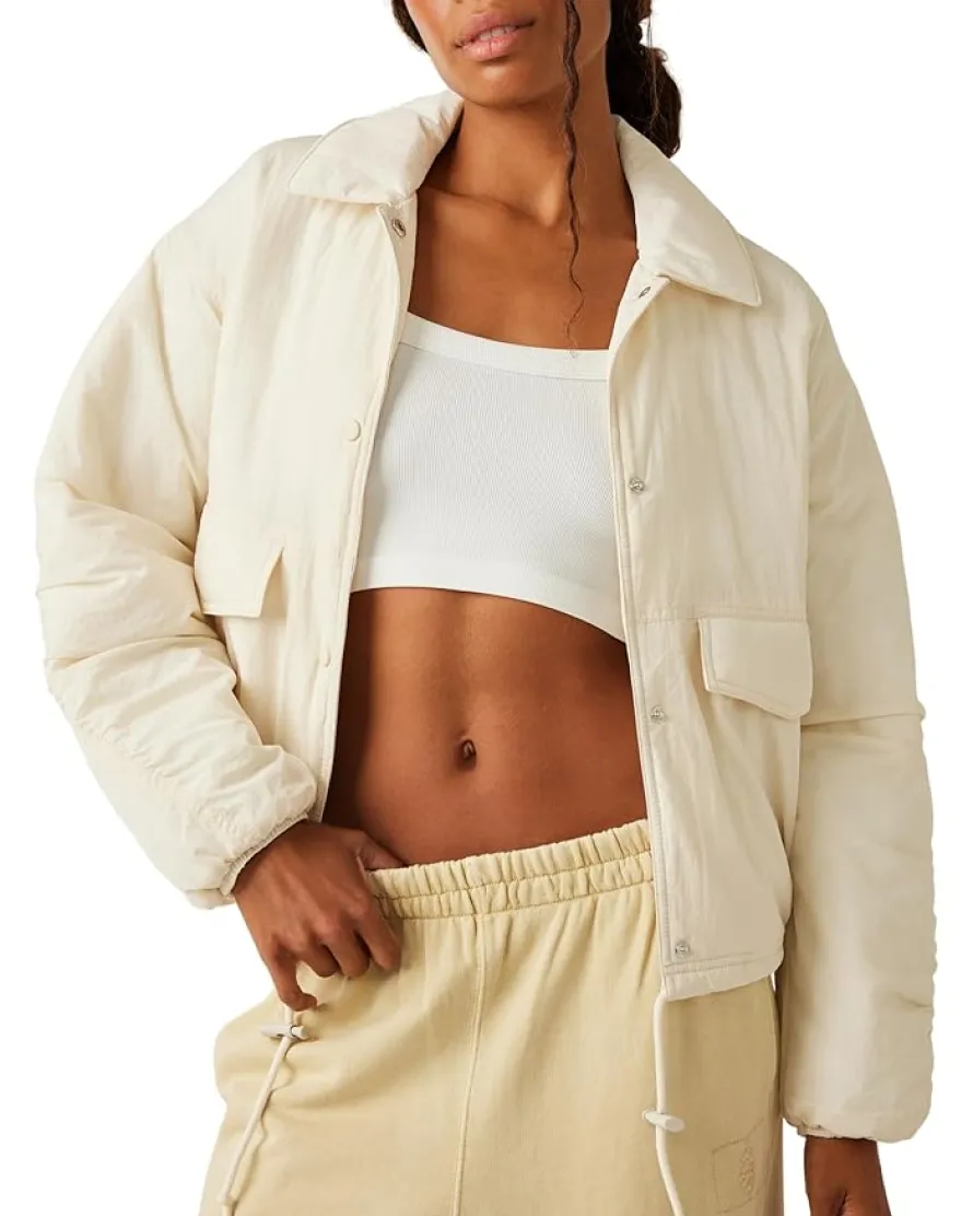 - Cuddle up in chic style and sumptuous comfort wearing FP Movement™ Off The Bleachers Coaches Casual Jacket. Featuring quilted diamond stitching at the interior with water-resistant fabrication, it has a collared neckline with snap-button front closure and an adjustable drawcord hem.