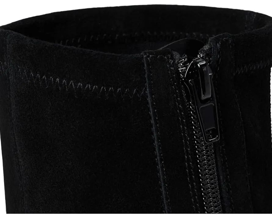 - Crafted with a stretch suede upper, the Vaneli® Oleg ankle boot features a zippered side closure for easy wear and a cushioned leather footbed that supports all-day movement. Its stacked block heel adds a subtle lift, while the treaded rubber outsole ensures reliable traction in varied conditions.