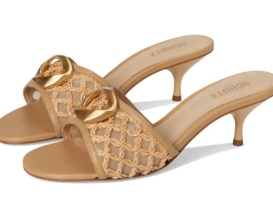 - Add a touch of luxury and uniqueness to your shoedrobe by opting for the Schutz® Olga Kitten Embroidery sandals. Featuring a kitten heel, these slip-on sandals provide both elegance and comfort for all-day wear.