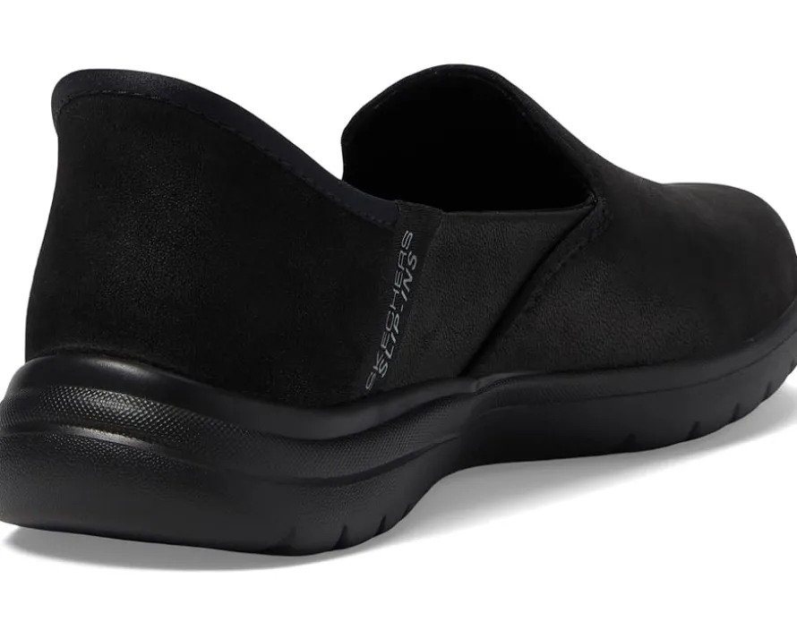 - Walk with ease wearing the stylish SKECHERS® Performance On-The-Go Flex – Captivating Hands Free Slip-Ins. Crafted for the modern woman, this pair of shoes features round toe design, flat heel, and exclusive heel pillow to hold your foot in place. It has faux leather Perform Tex upper and Air-Cooled Memory Foam comfort insole.