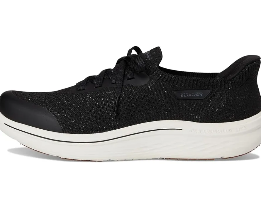 - Style it sporty or street-chic, On-the-go Hands Free Slip-ins Max Cushioning Lite Aura – Quinn by SKECHERS® Performance brings the glow to wherever you go. Designed with an easy pull-on style and fixed laces, this sneaker features the exclusive Hands Free Slip-ins™ with a secure Heel Pillow™ that hugs your heel for a snug, no-fuss fit. The breathable metallic knit upper pairs perfectly with our ULTRA GO® midsole for high-rebound, responsive comfort. Featuring a lightweight EVA insole and outsole and a lower-profile Max Cushioning Lite Aura design, these sneakers deliver athletic performance with sleek, casual style.