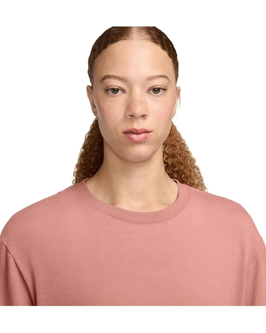 - The Nike® One Relaxed Dri-fit Short-sleeve Top is designed for all-day comfort and versatility. A ribbed neckline enhances the favorite-tee feeling and helps keep the top in place while you move. A longer length is easy to tie up and customize for looks that go with everything you do in a day. The Dri-FIT™ technology wicks perspiration towards the fabric surface where it can evaporate. The pull-on style tee features a crew neck, short sleeves, Nike® swoosh logo at the back yoke, and a slightly curved hem.