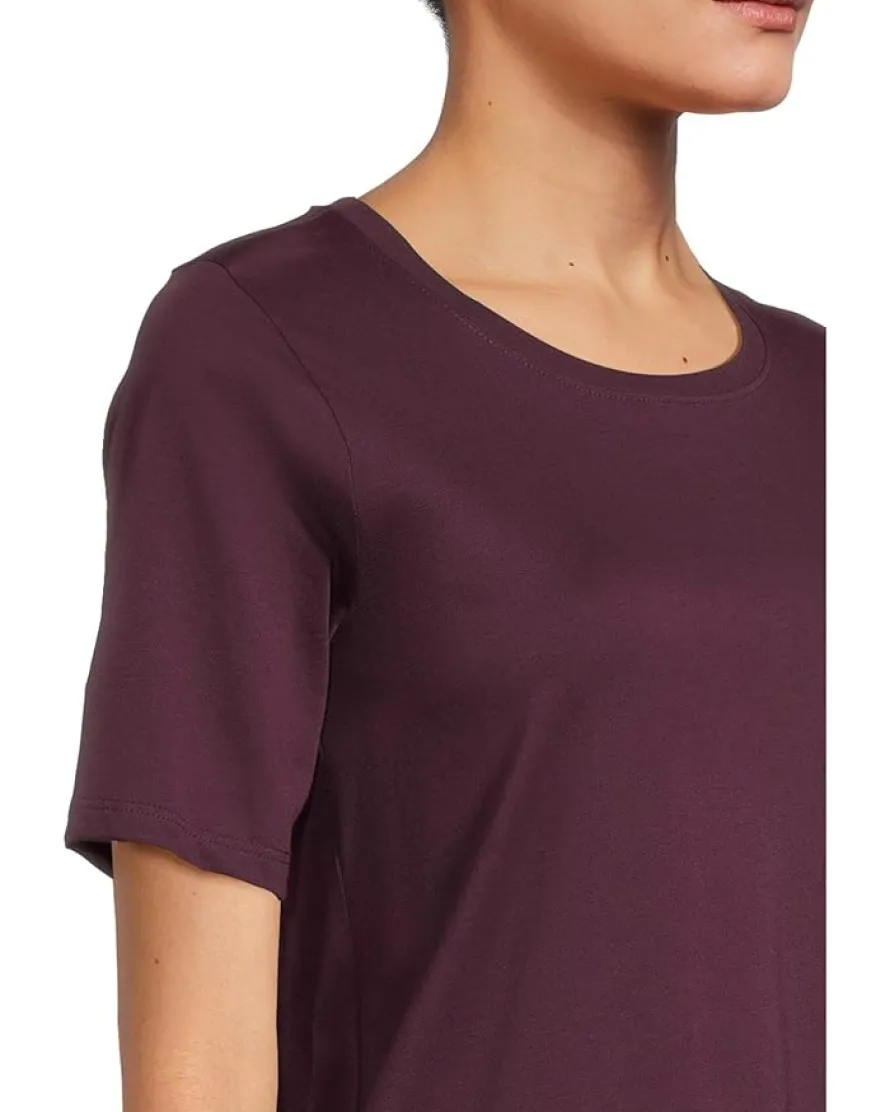 - Super cute and sleek, the EILEEN FISHER® Organic Pima Cotton Jersey Round Neck Tee has a crew neck top with short sleeves and crew neckline. In a lightweight blend of organic linen and organic cotton.