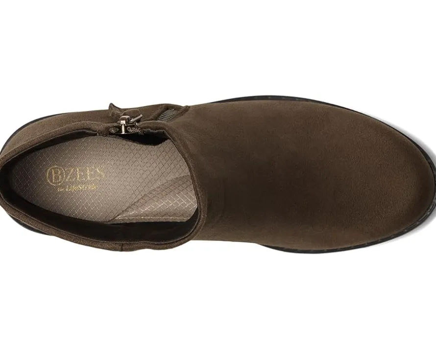 - Designed for the women who lead, the Bzees® Outgoing let you go everywhere. Crafted from stretch fabric upper with partially recycled linings and topcloth with a round toe, it features side zippered closure, and a low-block heel.