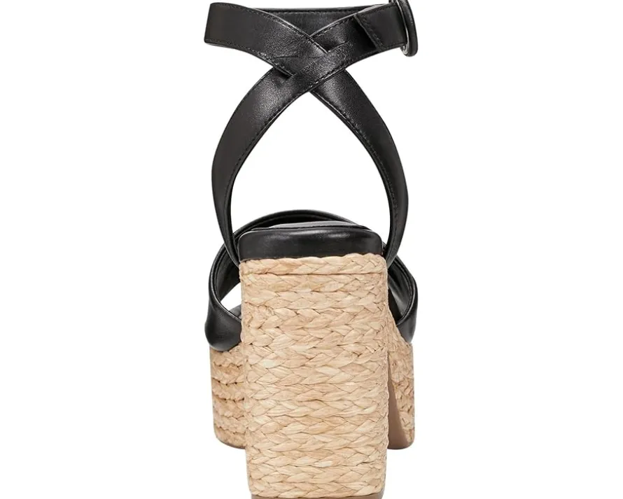 - Bring in the sleekness with sculpted flair wearing Marc Fisher LTD™ Palyca Sandals. The high-block heel footwear features woven construction with leather upper and buckled ankle strap closure.