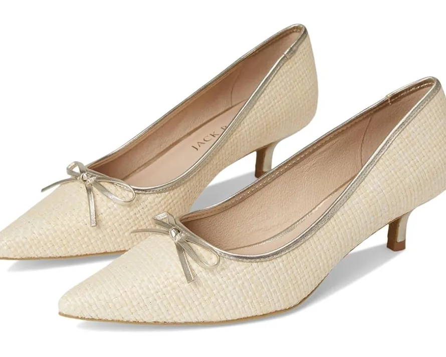 - Elegance defined in the Jack Rogers® Pammi Pump. Designed for effortless refinement, this slip-on beauty features a luxe leather upper and lining, embracing your feet in premium comfort. A cushioned foam insole ensures plush support, while the durable rubber outsole keeps you confidently grounded. The delicate kitten heel adds just the right lift, making it perfect for all-day wear. Adorned with Jack Rogers’ signature floral medallion, this chic silhouette is a go-to for the office, special occasions, or anytime you want to elevate your look with effortless grace.