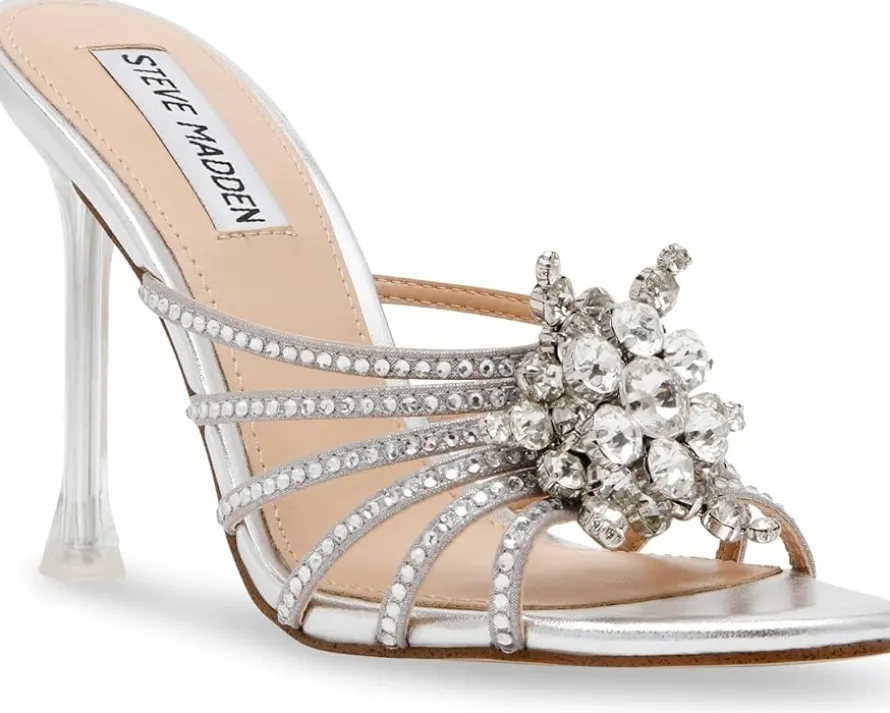 - Step into style with the Steve Madden® Pamola. These high heels feature skinny straps and a round toe, topped with rhinestone embellishments. Elevate any outfit with these unique and chic sandals.