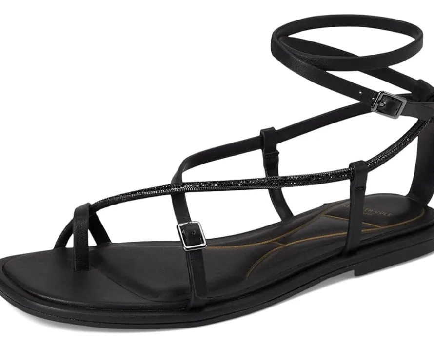- Step into luxury choosing the Kenneth Cole New York® Paros Jewel sandals. Crafted with faux leather upper and lining, these sandals offer a sophisticated touch to any look. The padded insole adds cushioned comfort, while the strappy style and buckle closure make them a versatile option for any occasion.