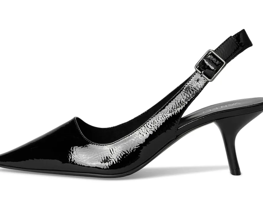 - The Vaneli® Patti Pumps are made with the finest materials and are made to be comfortable and fashionable! The slip-on style heels come with a leather upper, leather lining, and a cushioned rubber insole. The adjustable backstrap with buckle closure ensures a secure fit and the kitten heel adds height to your look.