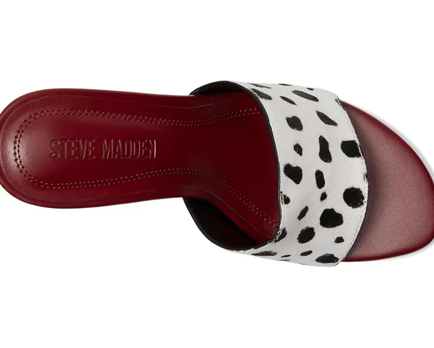 - The Steve Madden® Paula sandals are a playful and chic addition to your shoe collection. Their slip-on design makes these mules easy to wear, while the leather upper features an animal print. They are made of a faux leather insole and lining. Whether you’re dressing up for a night out or adding a touch of personality to your everyday look, these heeled sandals are the perfect choice.