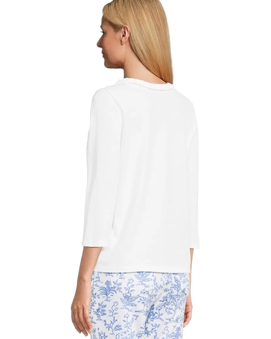 - Accentuate a sleek style wearing Lilly Pulitzer® Paulson Knit Top, crafted in a straight fit. The pull-on style top features a crew neckline, three-quarter sleeves, barnded hardware, and a braided trim.