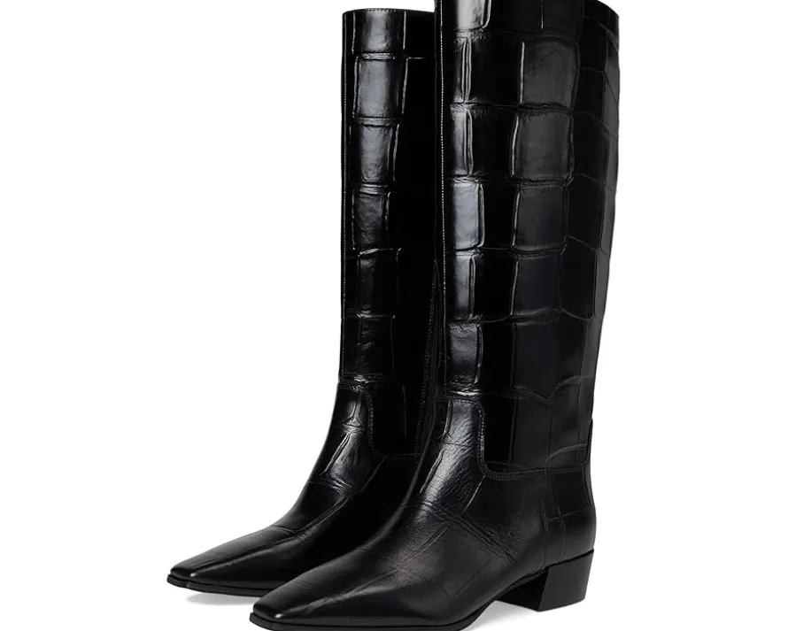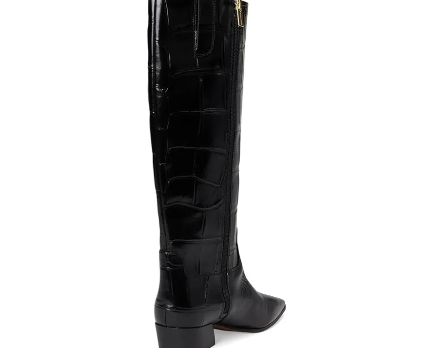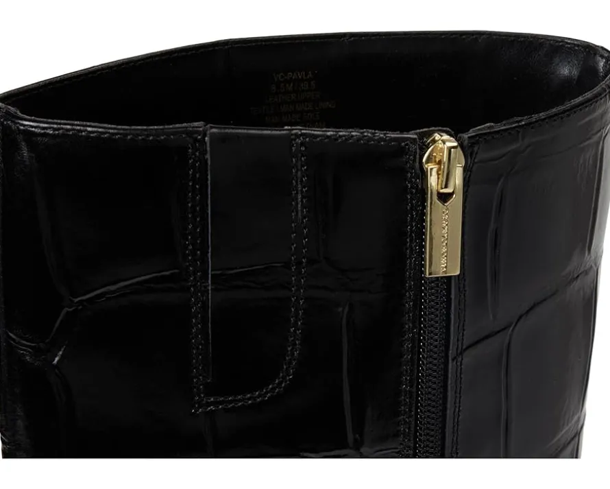 - These sleek Vince Camuto® Pavla Knee High Boots exude effortless sophistication. Crafted from croc embossed leather, these heeled boots showcase a refined silhouette with a pointed toe shape and a subtly structured shaft. The low stacked block heels offer both style and comfort, and the full-length zippered side closure makes for easy entry. They are made of a polyester insole and fabric lining. Whether paired with tailored trousers or a chic dress, these versatile heeled boots add a polished touch to any outfit.