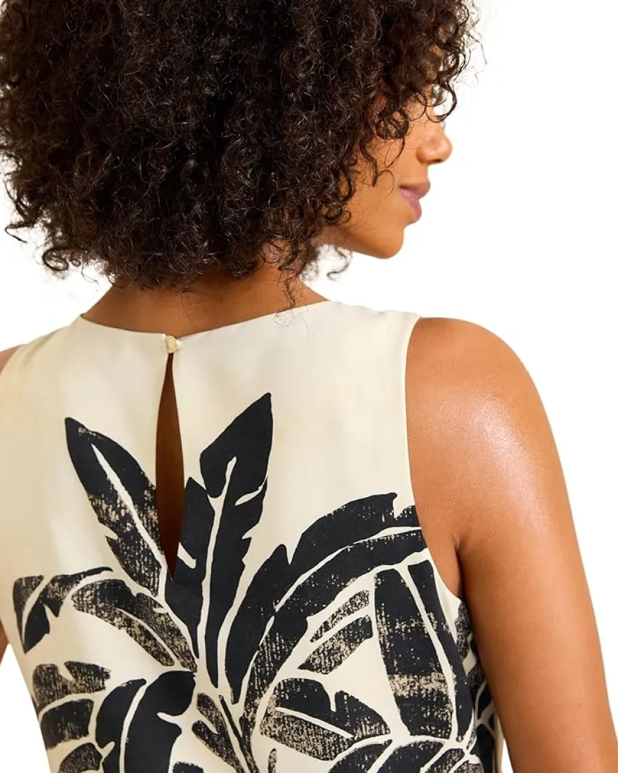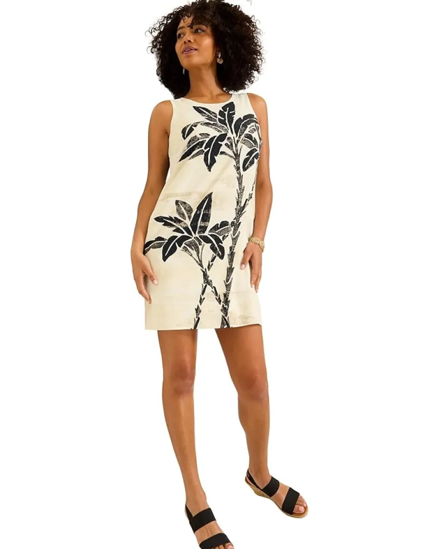 - The Tommy Bahama® Peninsula Palms Sleeve Shift Dress is an engineered Fuji silk printed plain weave sleeveless shift dress that works for different occasions. Featuring an allover floral print, this sleeveless dress is crafted from silk fabric for a comfortable feel. It is designed with a crew neckline, straight hem, zippered back closure, and a keyhole closure at the center back neck. Lined for added coverage, this silk dress makes a stylish addition to your wardrobe.