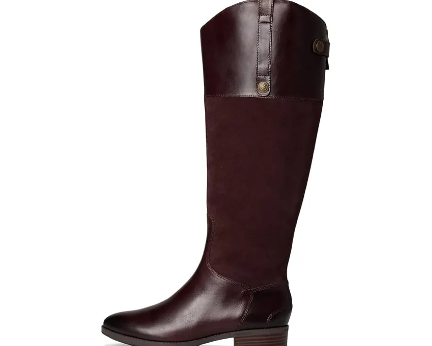 - The classic leather riding boot, Sam Edelman® Penny, adds luxe equestrian chic to any outfit with its sleek, timeless silhouette. This universally flattering style features a pull-on tab and zippered back closure for comfort and ease. Crafted in soft, burnished leather upper and polyurethane lining, it features a knee-high shaft with a subtle asymmetrical topline.