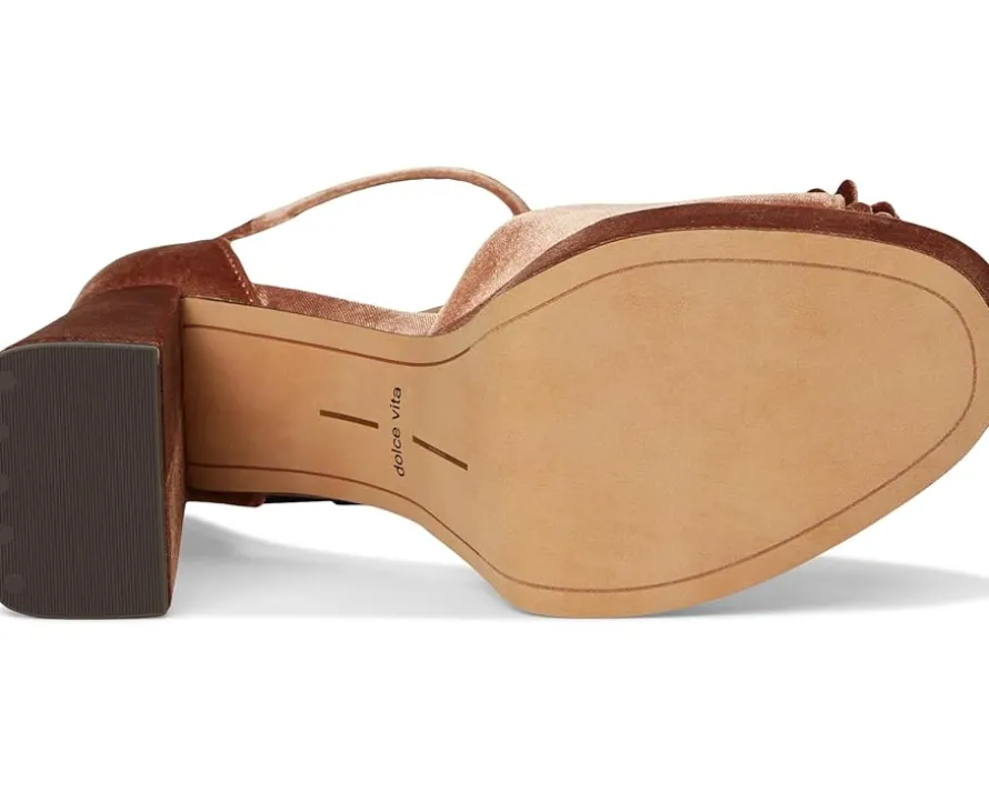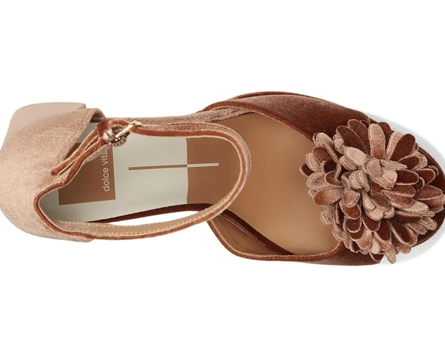 - The Dolce Vita® Perel Heeled sandals, a standout platform sandal that pairs whimsical detailing with evening poise. Draped in luxe velvet and accented by a soft pom-pom ornament, these heels balance statement style with wearable design.