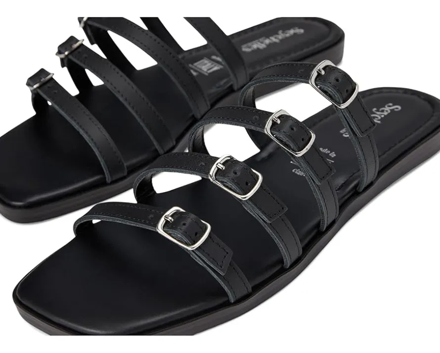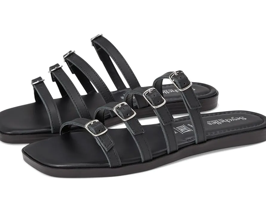 - The Persuasion Leather by Seychelles® features adjustable buckle straps, a comfy padded insole, and a modern square toe design, and will quickly become your go-to warm weather sandal. The slides are made with strappy leather upper, polyurethane lining, and EVA insole.