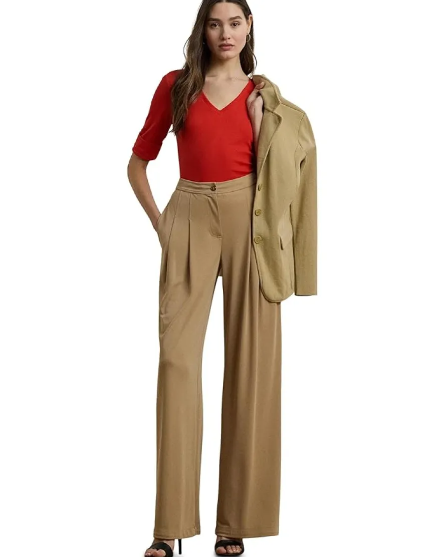 - Add a touch of elegance to your casual wardrobe with this refined Lauren Ralph Lauren® Petite Stretch Cotton Elbow-Sleeve V-Neck Tee. This slim fit casual tee has sleeves with folded cuffs and is intended to hit at the hip. It is accented with an “LRL”-embroidered logo at the right hem.