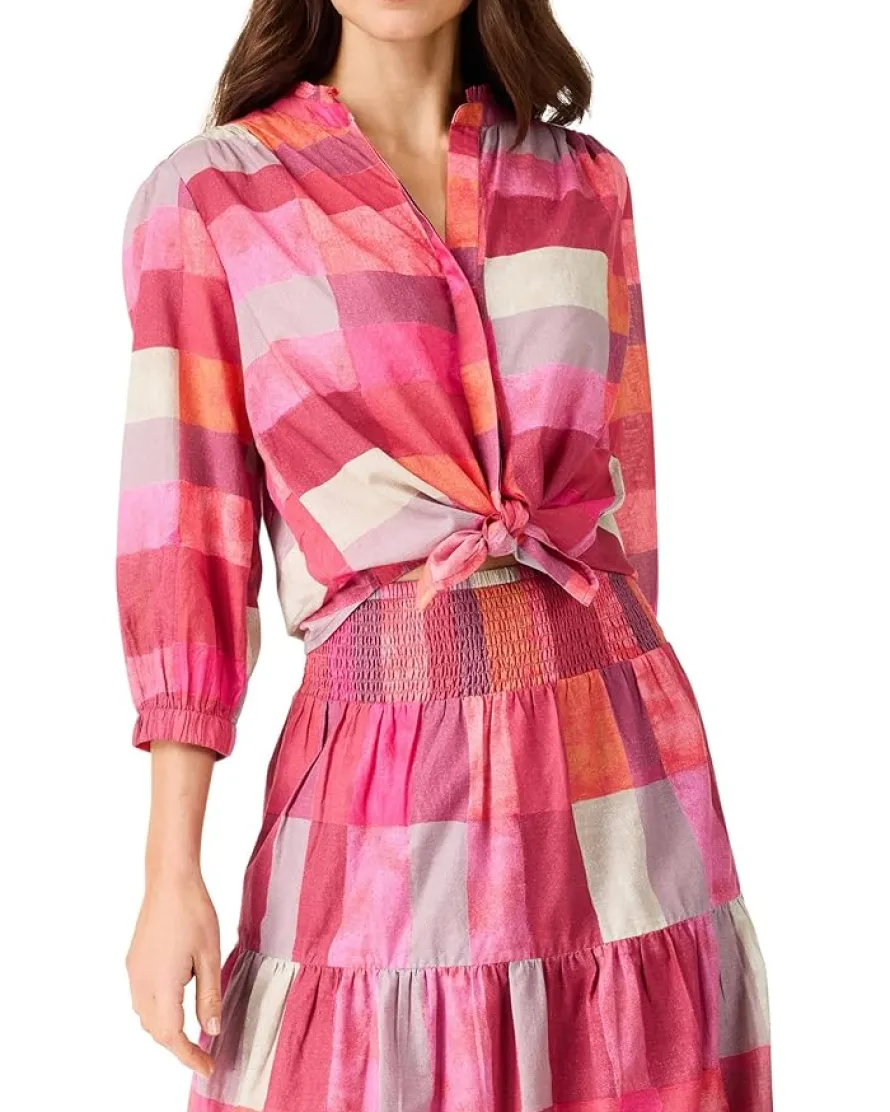 - The NIC+ZOE™ Petite Sunset Plaid Cotton Girlfriend Shirt has been updated with a season-less print inspired by ocean sunsets. It’s not just the horizon-inspired color that makes this piece stand out: the shirt’s back has shirring detail that adds interest and shape, while the stand collar neckline has unique shirring too. It features three-quarter-length sleeves with elasticized cuffs and buttoned front closure.