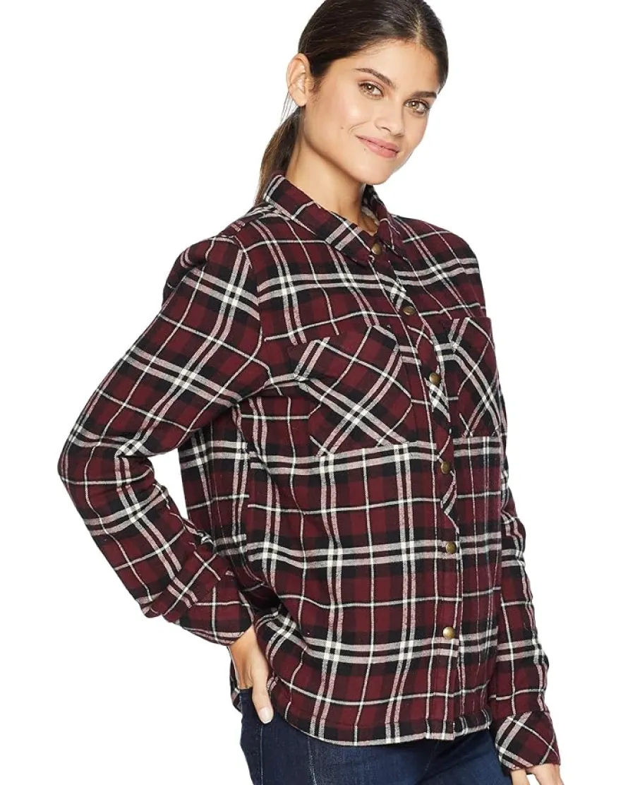 - Relaxed fit flannel features sherpa lining and a yarn-dyed plaid for effortless coziness.