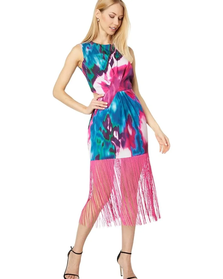 - Highlighting a colorful painterly print and boasting a flattering bodycon silhouette, the ONE33 Social™ Pleated Front Fringe Dress is an apt pick for your cocktail night!