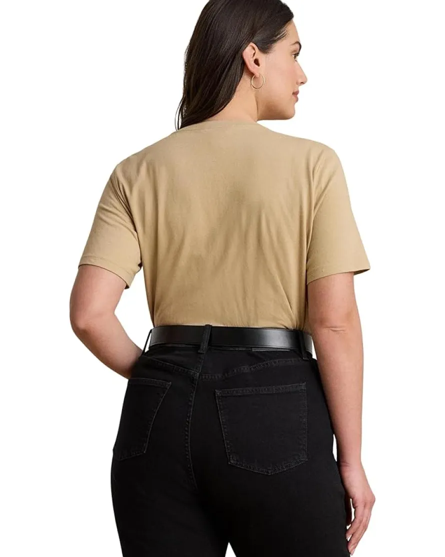 - Made with soft cotton jersey, this relaxed-fitting Lauren Ralph Lauren® Plus Size Beaded-logo Cotton Jersey tee displays Lauren’s geometric beaded logo at the chest for iconic style. It features crew neckline, short sleeves, straight hem, and pull-on style.