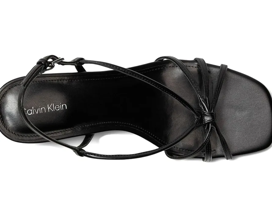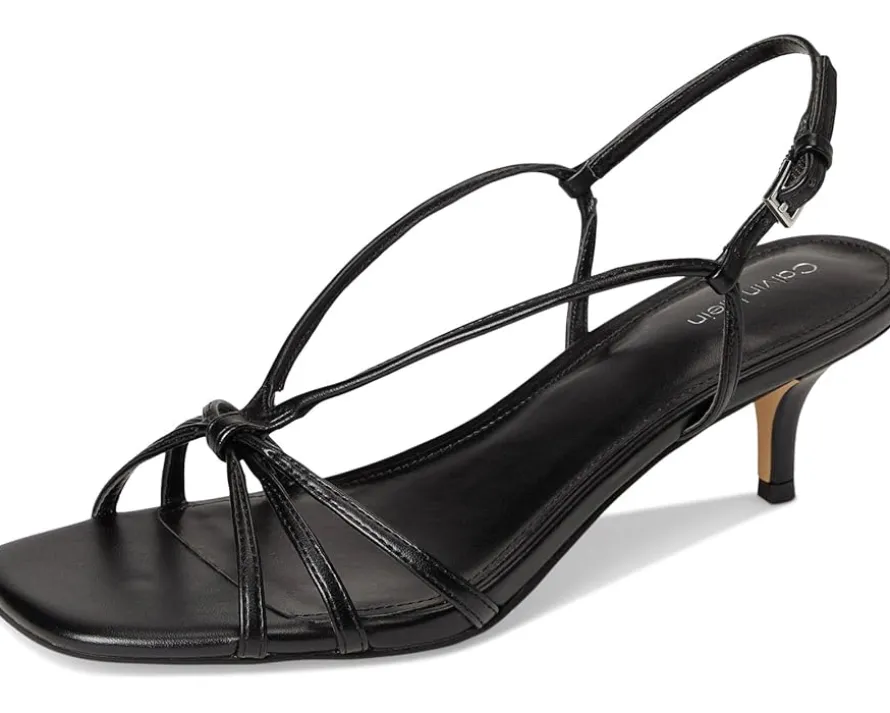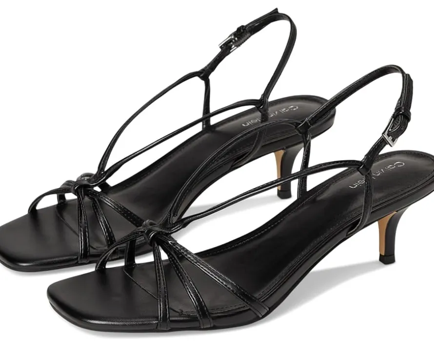 - Modern charm meets enduring elegance styling Calvin Klein® Poeta. Designed for the fashion-forward, this strappy dress sandal features a sleek faux leather upper that adds a luxe touch to any outfit. The secure buckle closure ensures a snug fit, while the soft PU lining keeps you comfortable all day. A chic square toe and delicate kitten heel offer a refined yet wearable silhouette, making it the perfect staple for any occasion. Finished with a lightweight EVA outsole for effortless movement, the Poeta embodies Calvin Klein’s signature blend of style and versatility.