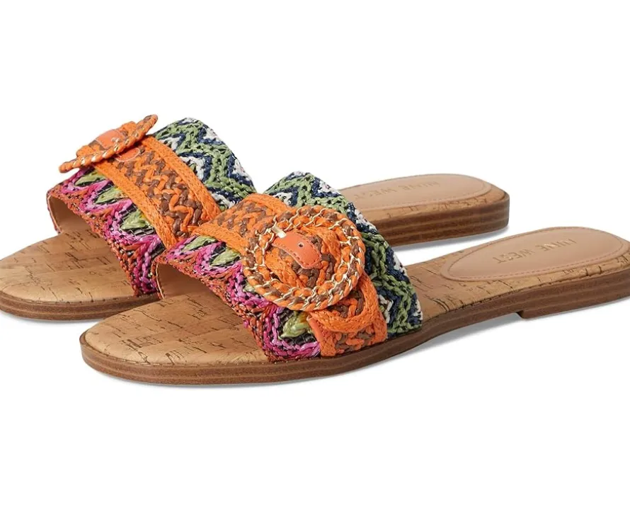 - Add a breezy touch to your warm-weather outings wearing the Nine West® Poland sandals. Featuring a woven design and a slip-on silhouette, these flat sandals combine effortless elegance with everyday comfort.