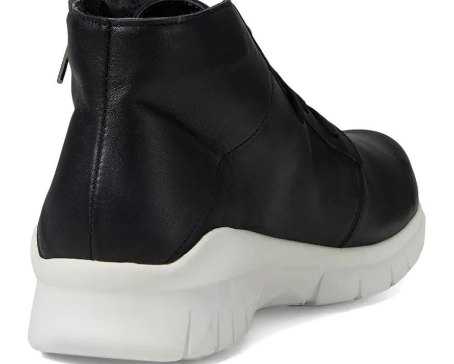 - Lace-up closure with angled zipper.