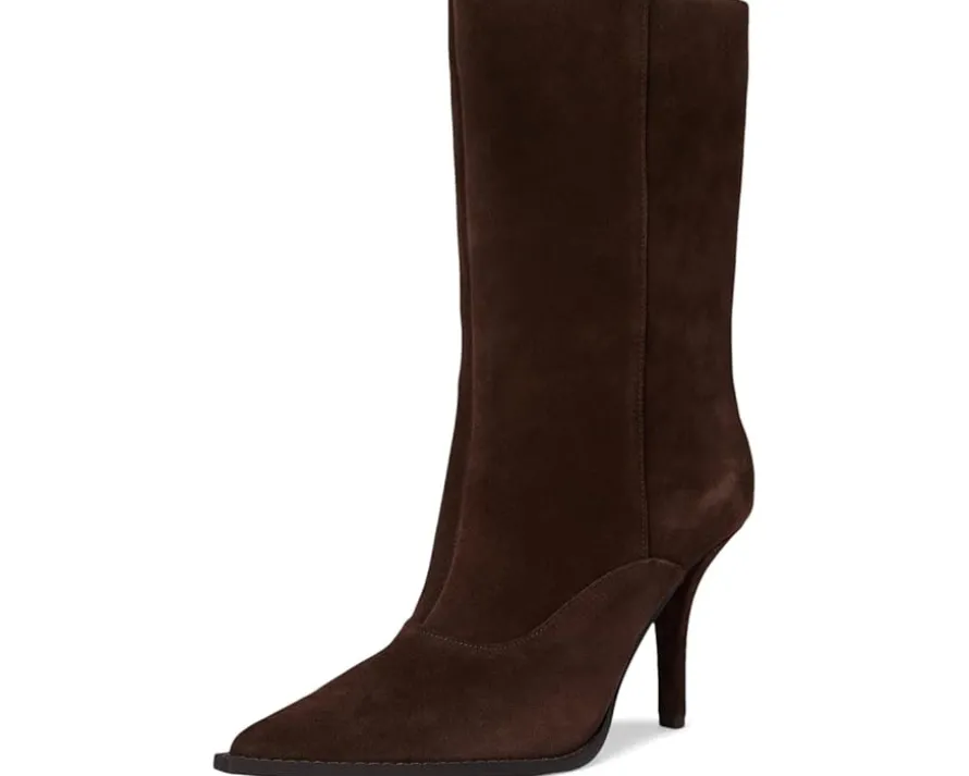 - Vince Camuto® Presca Bootie has a mid-calf silhouette that balances bold attitude with sleek design. Crafted from soft suede upper, polyester lining, and padded insole.