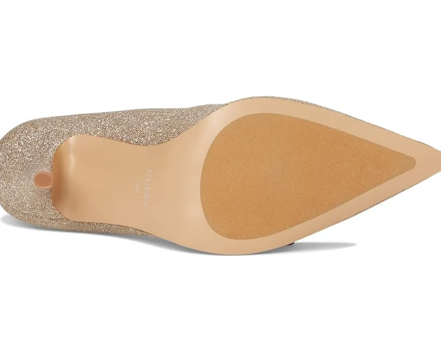 - The GUESS® Prinsen pump is anything but ordinary. The beautiful silhouette, rhinestone embellished ornament and stiletto heel features a cushioned leather insole for all-day support and a synthetic rubber flex outsole that moves with you.