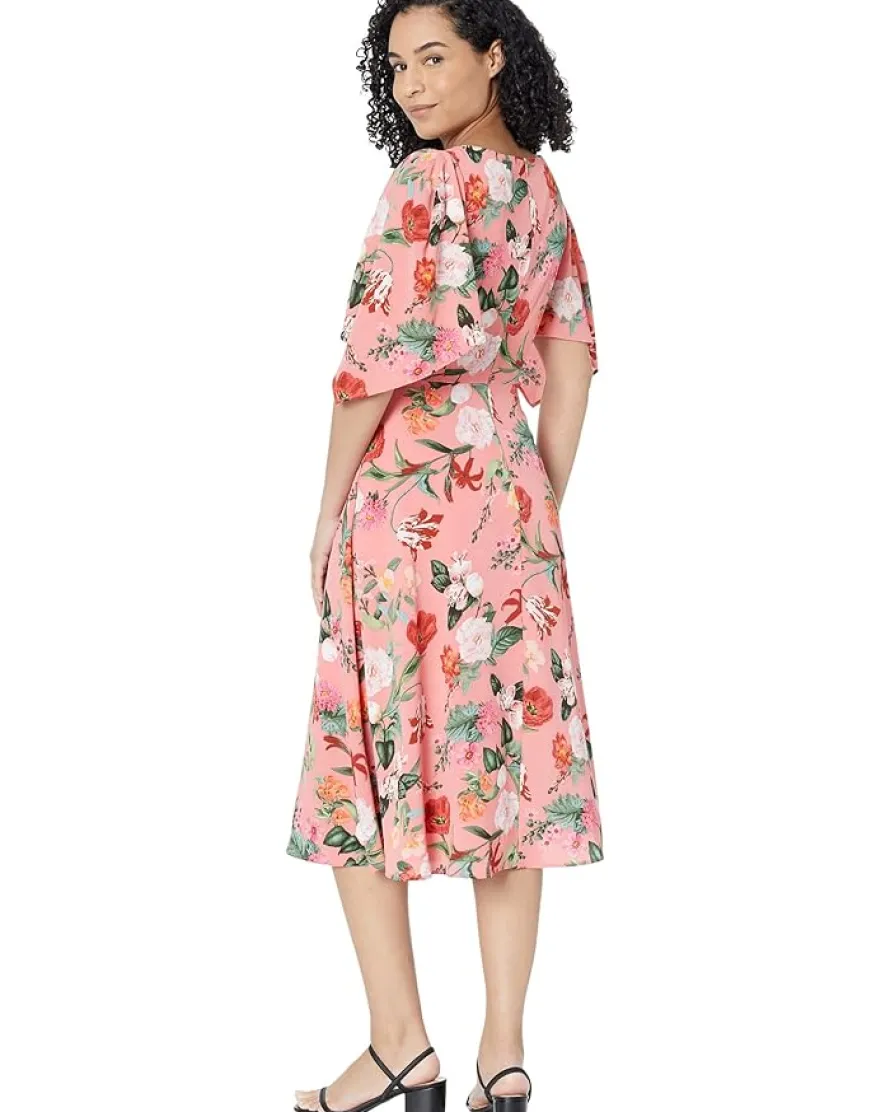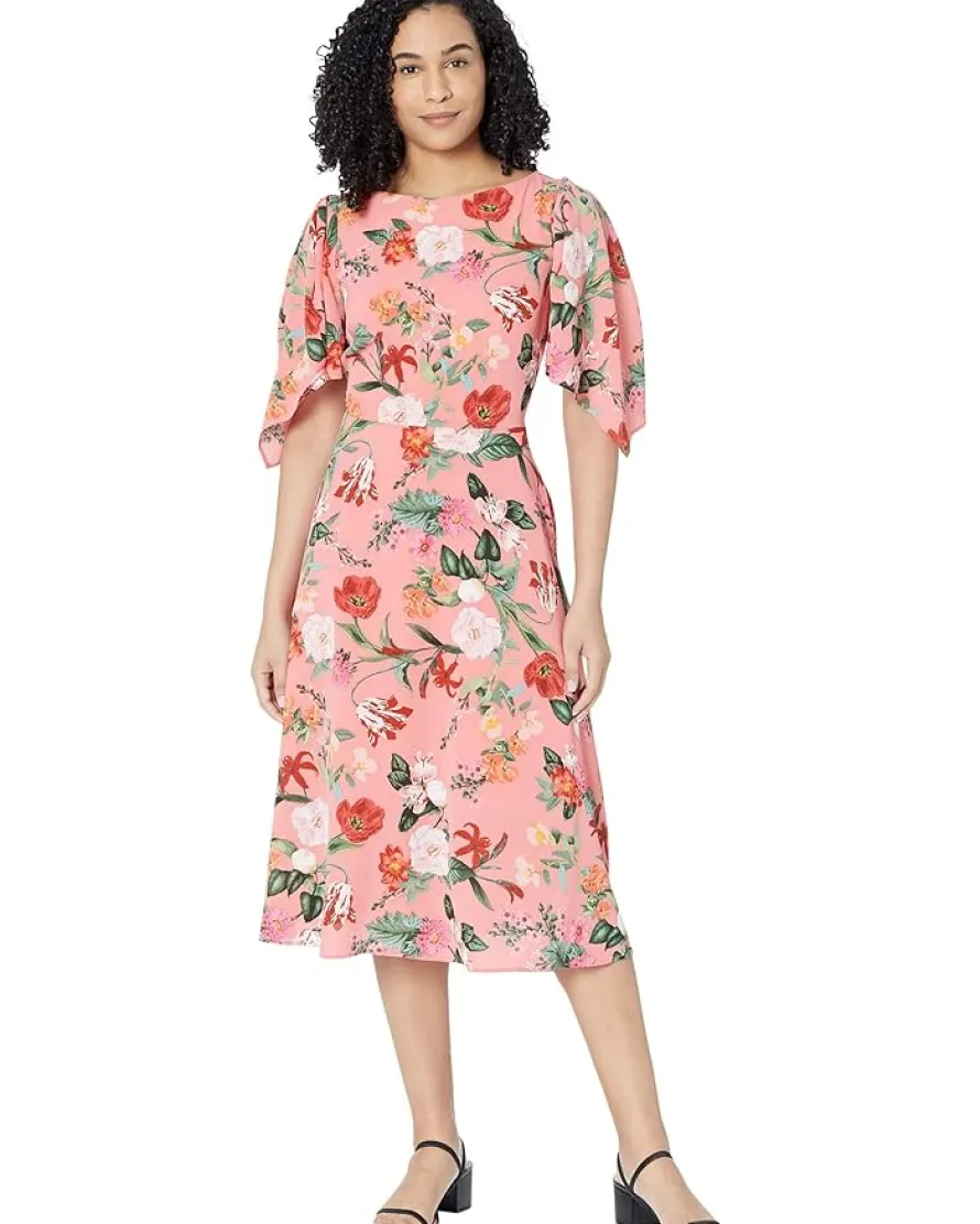 - Look chic wearing the easy-breezy Vince Camuto® Printed Pebble Crepe Boatneck High-Low Flutter Sleeve Midi Dress, perfect to wear on any occasion!