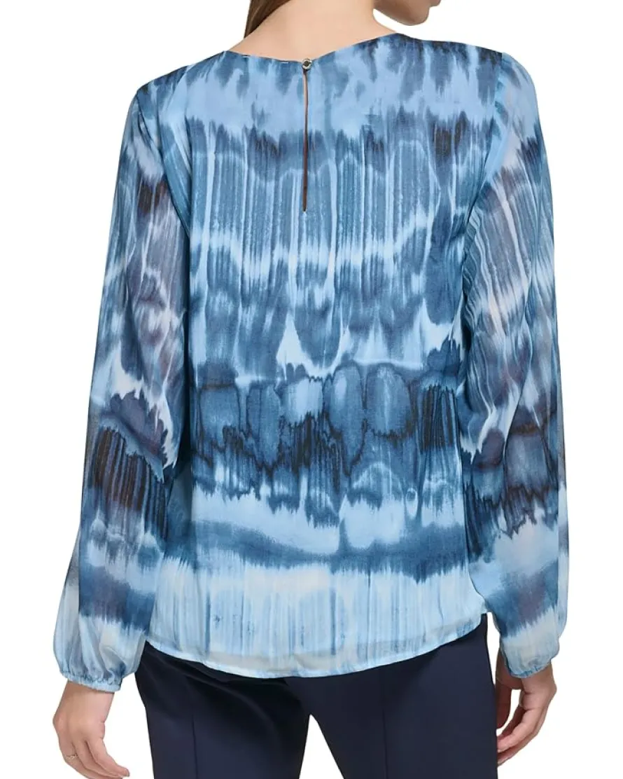 - Accentuate a stylish appeal everywhere you go wearing Calvin Klein® Printed Shirred Front Long Sleeve Top.
