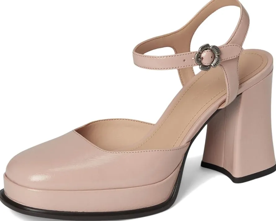 - Make a statement donning the COACH® Pumps With Tea Rose. Constructed with sleek leather upper and soft man-made leather lining, these pumps exude sophistication. The leather footbed ensures lasting comfort, while the ankle strap with buckle closure adds a modern touch. Featuring platform and block heels, these pumps are perfect for adding a touch of glamour to any outfit.