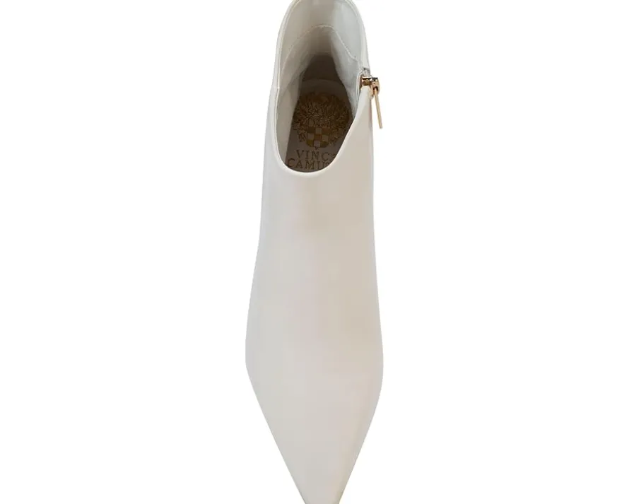 - Crafted from luxe leather upper, the Vince Camuto® Quinley boasts a chic snake print or matte metallic finish. Featuring a pointed toe, padded footbed, and trendy comma stiletto heel, this ankle-high bootie with a side zippered closure effortlessly transitions from denim to dresses, ensuring comfort and flair with every step.