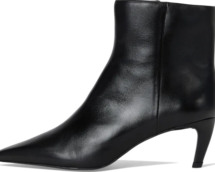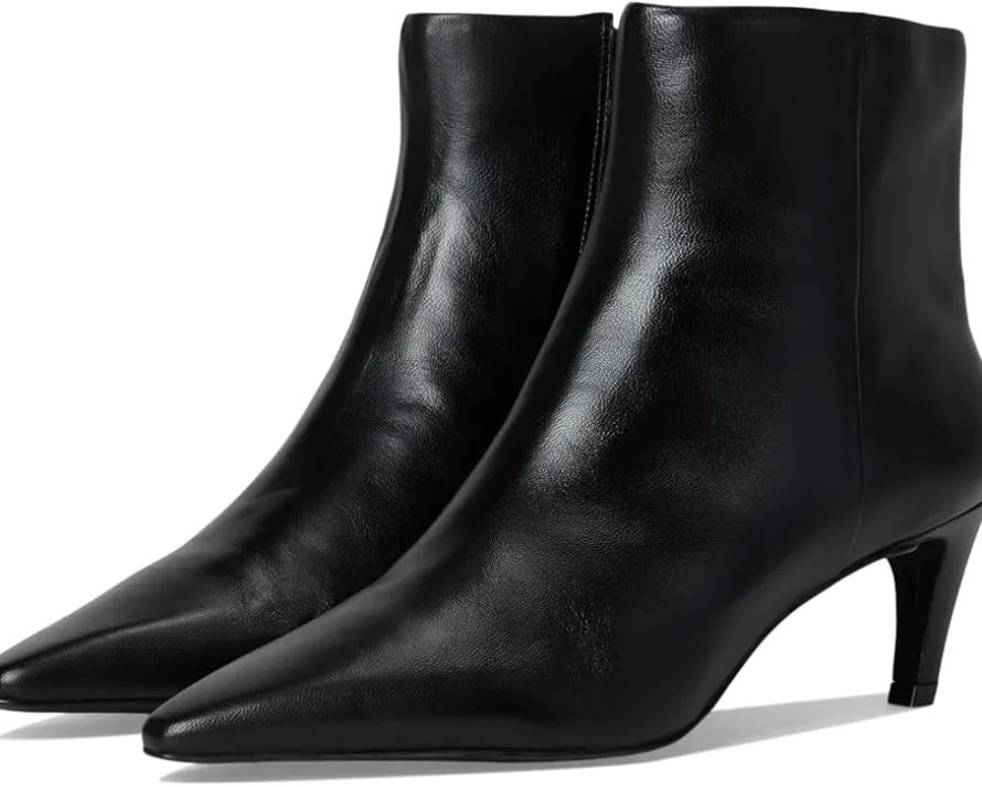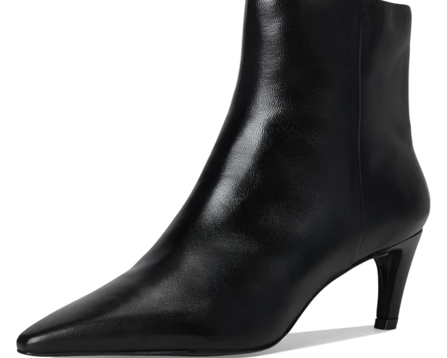 - Crafted from luxe leather upper, the Vince Camuto® Quinley boasts a chic snake print or matte metallic finish. Featuring a pointed toe, padded footbed, and trendy comma stiletto heel, this ankle-high bootie with a side zippered closure effortlessly transitions from denim to dresses, ensuring comfort and flair with every step.