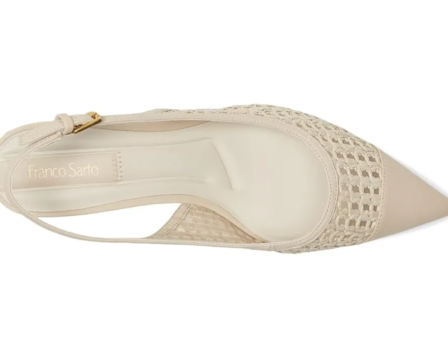 - Revamp your look by complementing outfits with these bold and beautiful Franco Sarto® Racer9 Slingback Shoes. Set on a slanted block heel, these dress shoes for women feature a pointy-toe and slingback design with a buckle closure for adjustability. These are crafted with a leather, woven, fabric, or faux leather upper partially made from recycled materials and partially recycled faux leather linings with soft + eco-conscious comfort. Informa Comfort Technology ensures ergonomic insoles, contoured padding at key pressure points, and exceptional support.