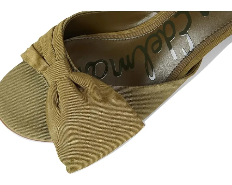 - Delicate and dramatic, the Sam Edelman® Ragan Strappy Sandals pair a dainty bow with a sculptural flare heel for a look that’s effortlessly elevated. The slip-on style heels come with a polyurethane upper, polyurethane lining, and a polyester insole.