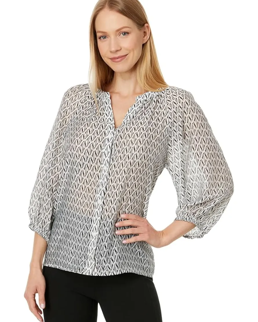 - Whether you’re getting ready for work or a formal event, the Vince Camuto® Raglan Sleeve Button Down Blouse is a great choice. The long raglan sleeves, V-neckline, and straight hem add to its style. This printed blouse comes with a buttoned front closure for easy wear. The polyester fabric provides superior comfort and breathability. Perfect to pair with trendy bottoms and casual pants, this button-down blouse makes a great addition to your wardrobe.