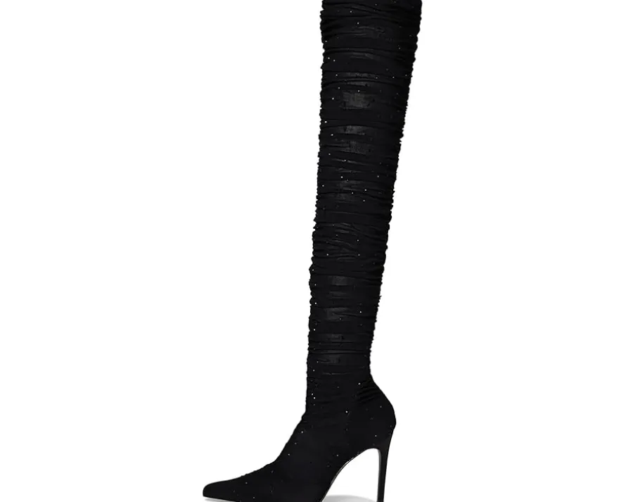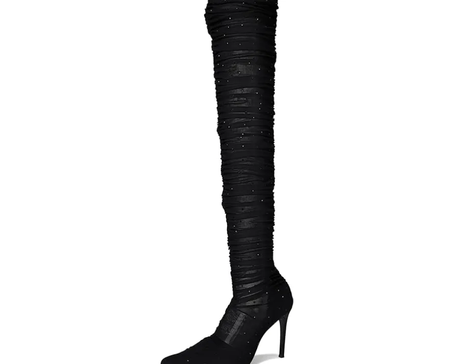 - Elevate your style with the Steve Madden® Rashida boot, featuring a sleek pointed toe and an over-the-knee silhouette crafted from breathable mesh. The slender stiletto heel adds height and sophistication, making this boot a perfect choice for a refined, fashion-forward look.