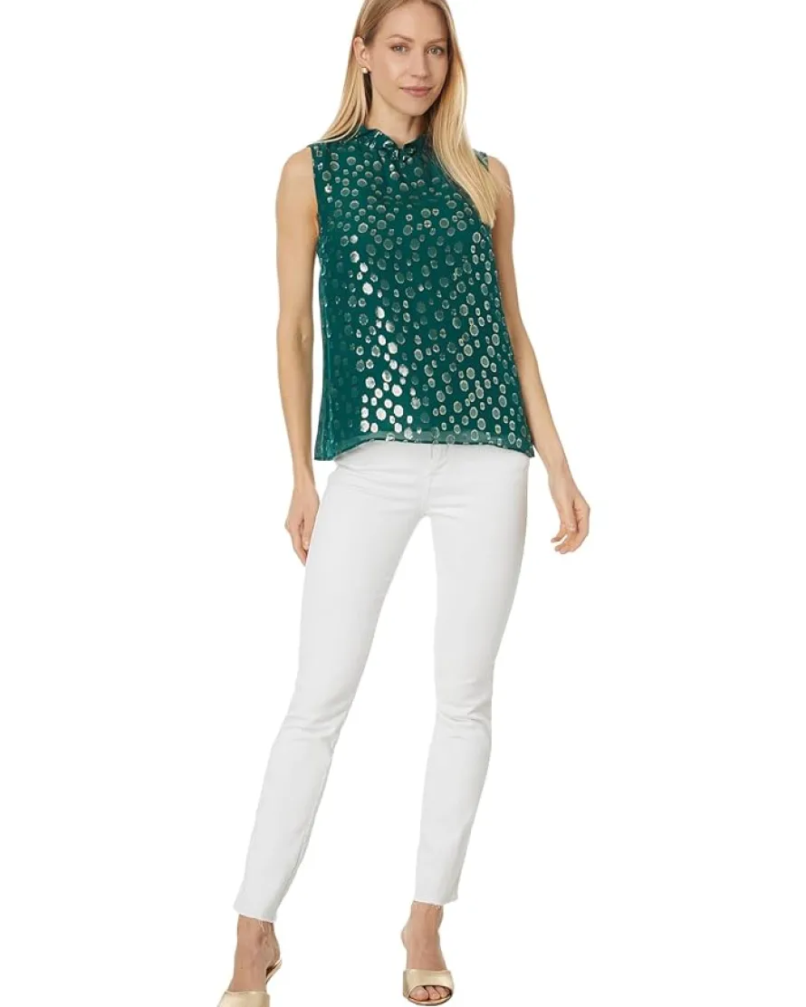 - Designed in a straight fit silhouette, the Lilly Pulitzer® Rayalynne Silk Top has a ruffled neckline and allover lined construction. This bra-friendly top has a high neckline with ruffle trims.