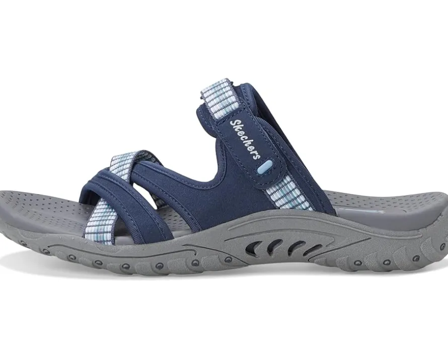 - Take every step forward with improved comfort and functionality wearing SKECHERS® Reggae – Color-Full Sandals. The slip-on style strappy sandal features a soft suede and webbing fabric upper with ombre fade, an instep hook-and-loop closure, leather lining, ethylene-vinyl acetate insole, and a lightweight & flexible supportive Reggae midsole.