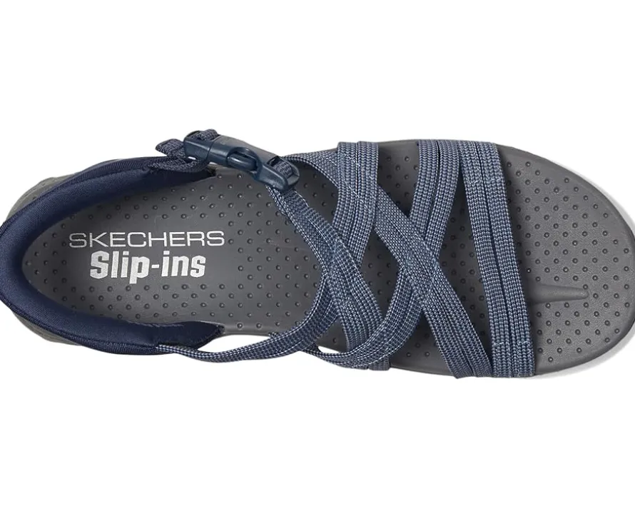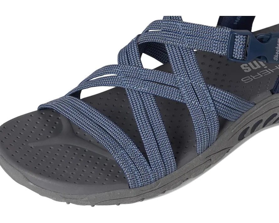 - Ease back with style and stretchable comfort in the SKECHERS® Reggae – Morning Light. This vegan sandal features a woven stretchy fabric upper with a quick closure buckle and a supportive Reggae® midsole.