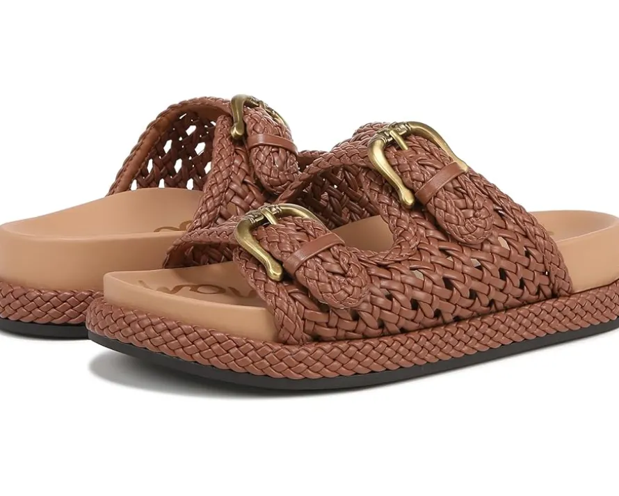 - Experience perfection in your comfort chic style wearing the Sam Edelman® Reid Flat Sandals. The slip-on footwear features textured polyurethane upper with adjustable buckled straps and open toe silhouette.