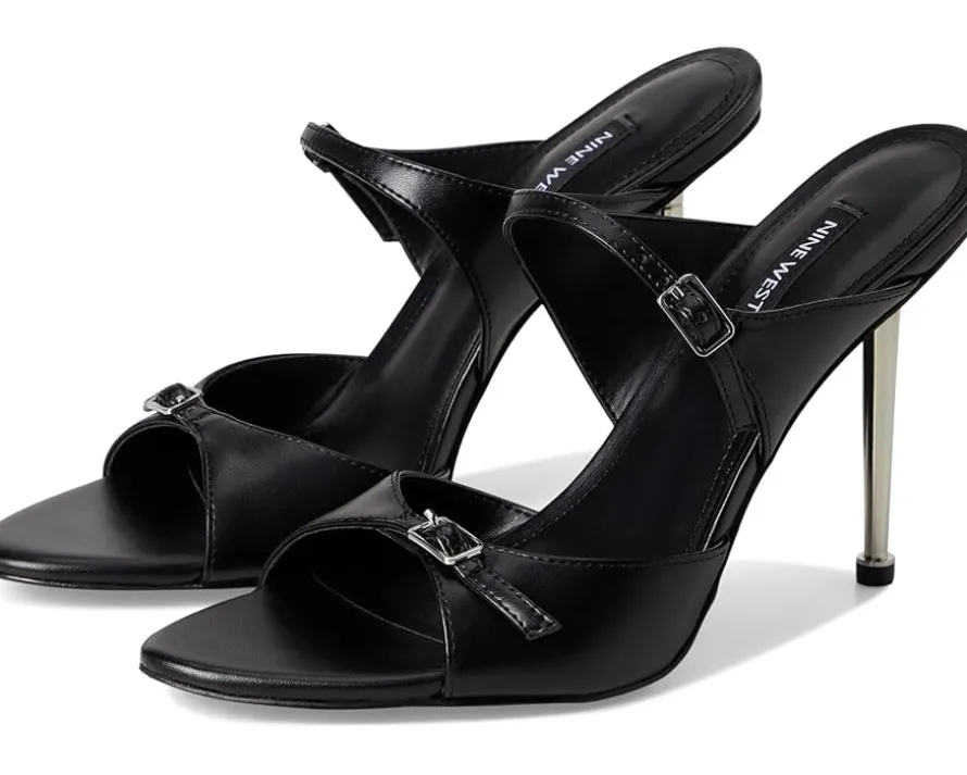 - Step up your shoe game choosing the Nine West® Reida dress sandals. It features fashionable stiletto heels, open toes and slip-on silhouette. They have double strap upper design with buckle detail. The Reida is a must-have wardrobe staple! Founded in 1978, Nine West empowers women to take on the world in style, from day to night.