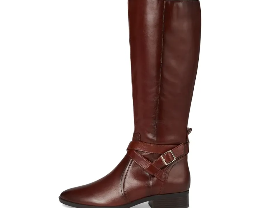 - Go west. The Naturalizer® Rena2 Boots with walkable block heels have places to be. These knee-high boots are made of a leather upper that is responsibly sourced from Leather Working Group-certified tanneries and a 100% recycled fabric lining. The polished straps and buckle detail add to their appeal while the removable fabric insole offers added comfort. These heeled boots feature Contour+ Comfort technology for a premium fit and all-day comfort experience. The insole, toe box, and heel counter are crafted from partially recycled materials. Designed with a zippered side closure for easy wear, these leather boots are a must-have for your footwear collection.