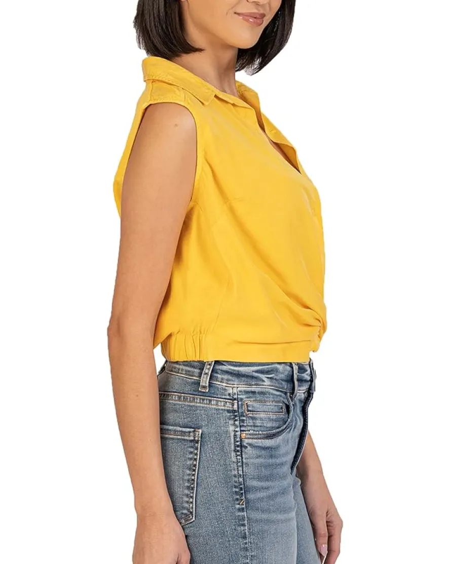 - Casual and sleek, the KUT from the Kloth™ Renata Front Twist Sleeveless Blouse w/ Collar adds a hint of style to your overall look.