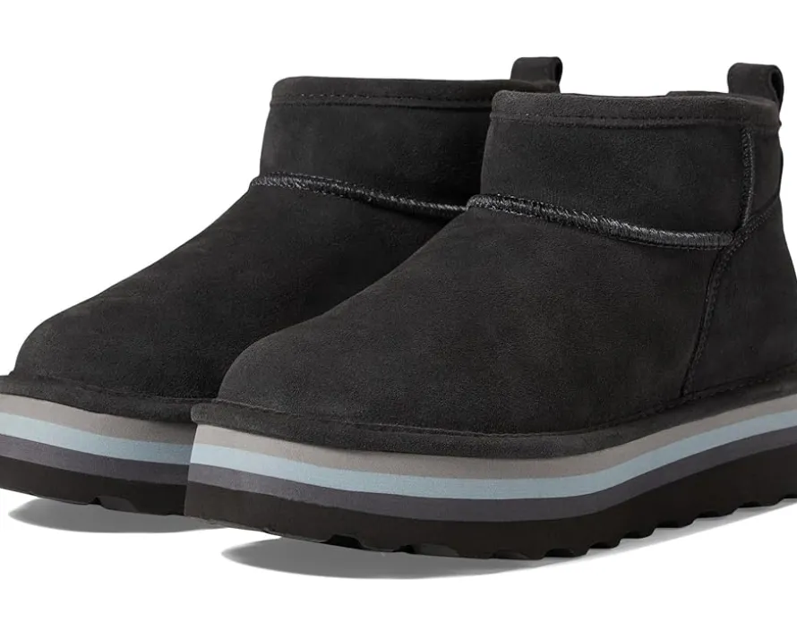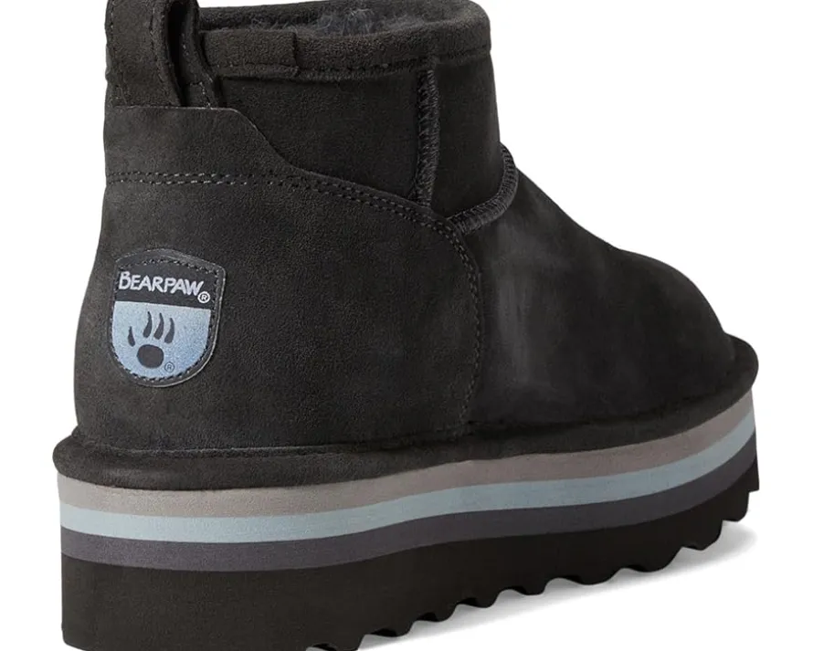 - Treated with BearCoat®, the BEARPAW® Retro Shorty boots have a cozy wool blend lining and removable footbed to keep your feet comfortable. With a thick platform sole, the pull-on footwear has a back pull tab for wearable ease.