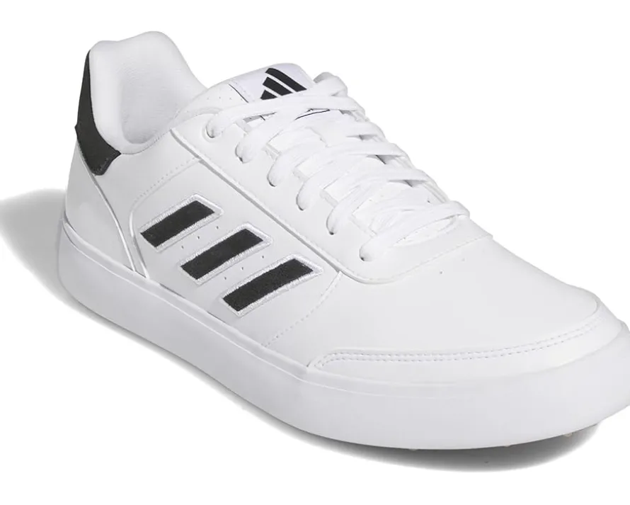 - Showcase an impactful performance on the track wearing adidas® Golf Retrocross 24 Sneakers. The sneakers are crafted with a microfiber leather upper and feature a round toe shape with lace-up closure. The contrasting adidas® logo on the tongue and signature three-stripe branding on the sides adds to the authenticity.