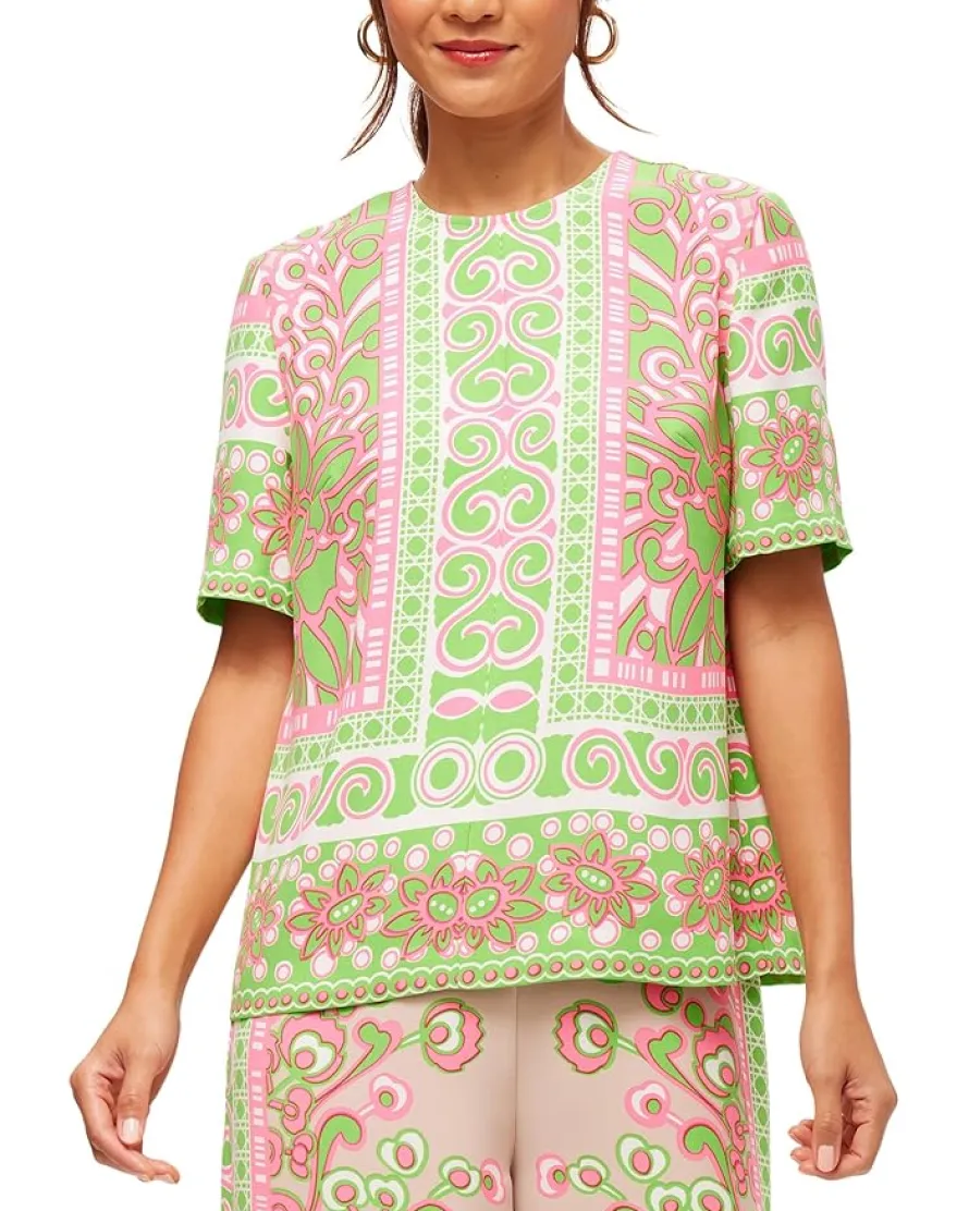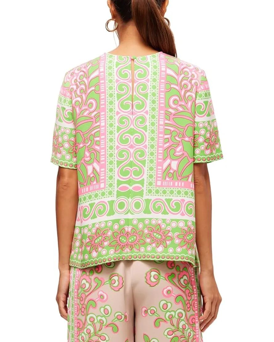 - Feel comfortable without being boring with Trina Turk™ Riggs Top. This comfy pull-on style top features a round neckline, short sleeves, an attractive allover placed print, and a straight hem.